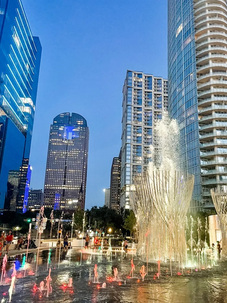 As twilight painted the city, I took a short walk towards Klyde Warren Park. Surrounded by bustling food trucks and children’s laughter in the splash pad, I was caught up in the views as I realized the expressway actually goes under the park! I had read about this but didn’t quite understand it until I saw it! From there, my solo journey led me towards Uptown to find some dinner.